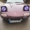 This LED Halo ring kit includes 2 headlamps which replace both your OEM headlights. The halos are LED and will make your Miata visible in the traffic. They go very well with the round rear of the original Miata.