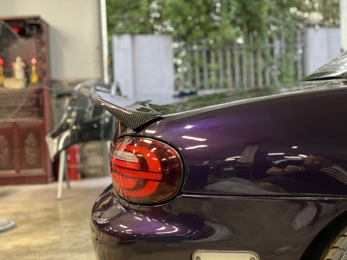 Enhance your Miata MX-5 NB with our sleek and stylish long-tail trunk spoiler. This newly released spoiler completes the rear end of your NB, giving it a polished and integrated look. Designed to extend over the rear quarters, it blends seamlessly with your car’s lines, adding a touch of race-inspired elegance.